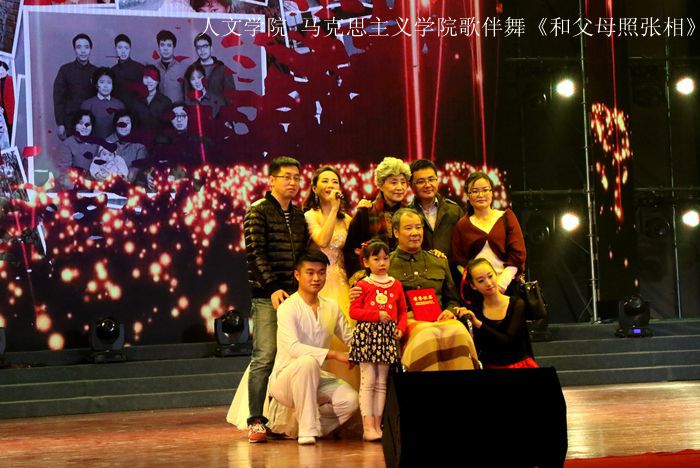 晚會結(jié)束后,校領(lǐng)導(dǎo)走上舞臺與演職人員親切握手,祝賀演出成功并合影留念。
