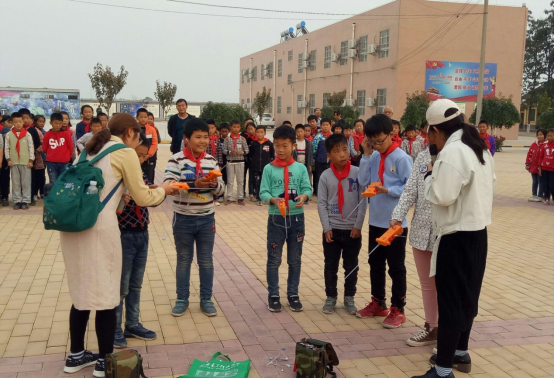 生命科學技術學院師生在蒲城縣鈐鉺小學(原鈐鉺中學)帶領孩子們一起體驗“無